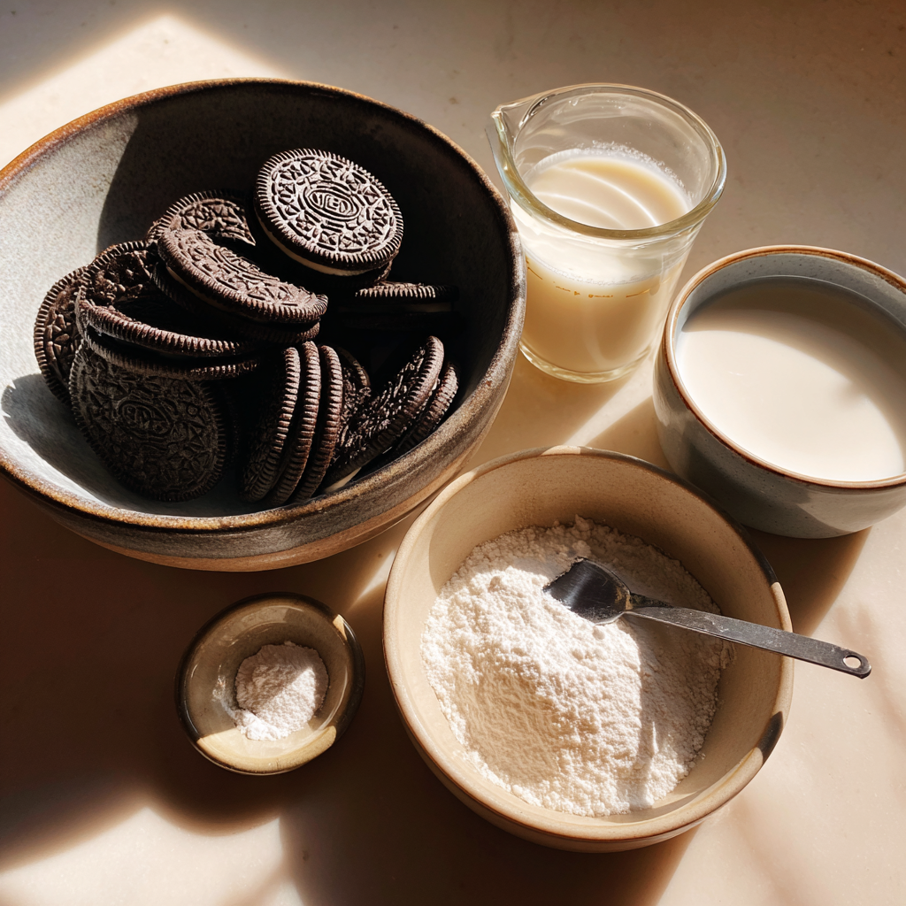 The magic of this recipe lies in its simplicity. Oreos aren’t just cookies—they already contain flour, sugar, cocoa, and cream filling. When blended with milk and a touch of baking powder, they transform into a smooth batter that bakes into a soft, fluffy cake.