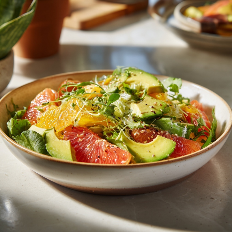 This salad isn’t just about tossing greens together — it’s a carefully balanced combination of creamy avocado, juicy citrus fruits, crisp vegetables, and a zesty homemade vinaigrette. Every bite delivers a mix of textures and flavors that feel both indulgent and wholesome at the same time.