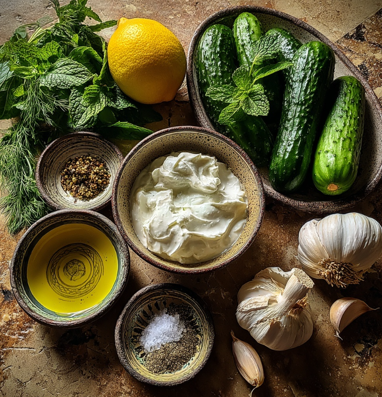 Ingredients for Creamy Cucumber Yogurt Ramadan Salad