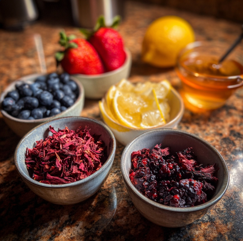 When combined with fresh berries, hibiscus tea transforms into a fruity, slightly sweet, and incredibly refreshing beverage that feels both indulgent and healthy.