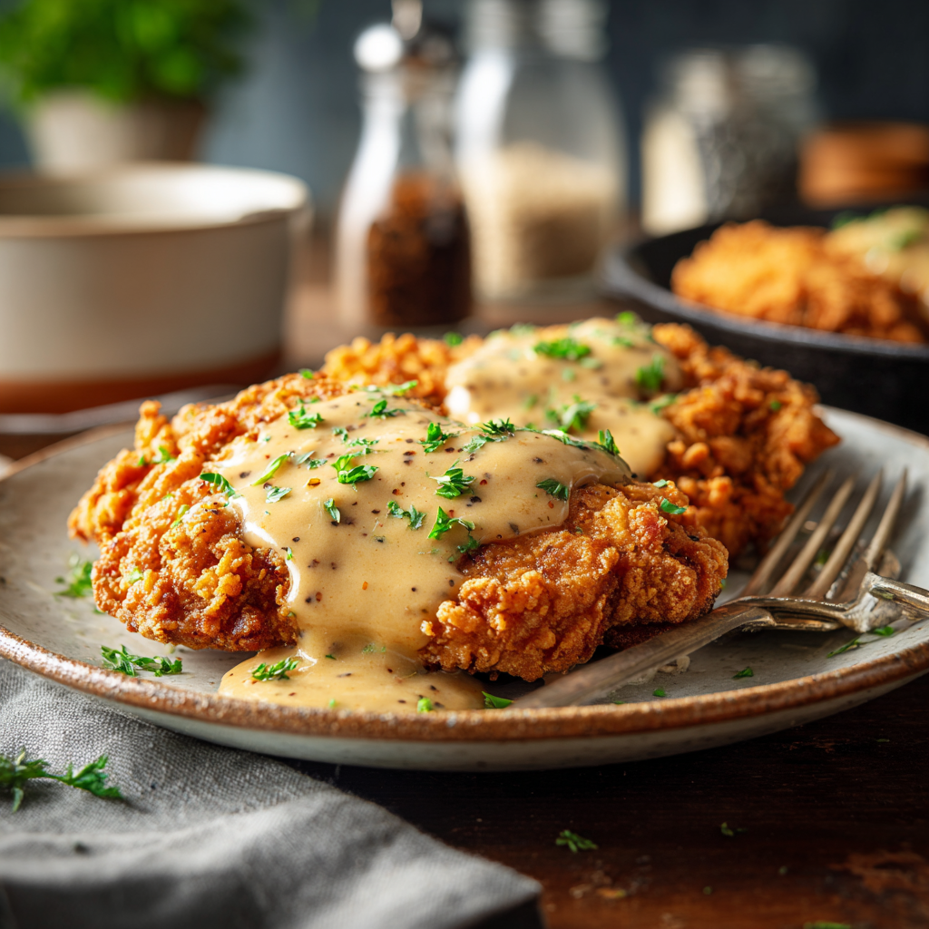 If there’s one dish that truly defines Southern comfort food, it’s chicken fried chicken. This crispy, golden, flavor-packed dish is a close cousin to the classic chicken fried steak—but instead of beef, we use tender chicken breasts coated in seasoned flour and fried to perfection. The result? A crunchy exterior with juicy, flavorful meat inside, all topped with rich, creamy pepper gravy.